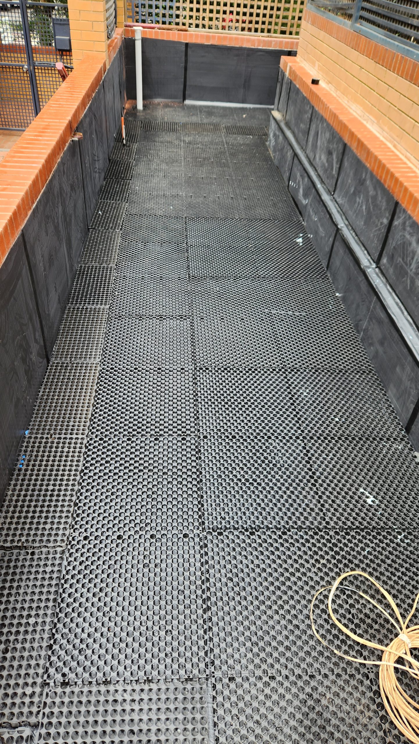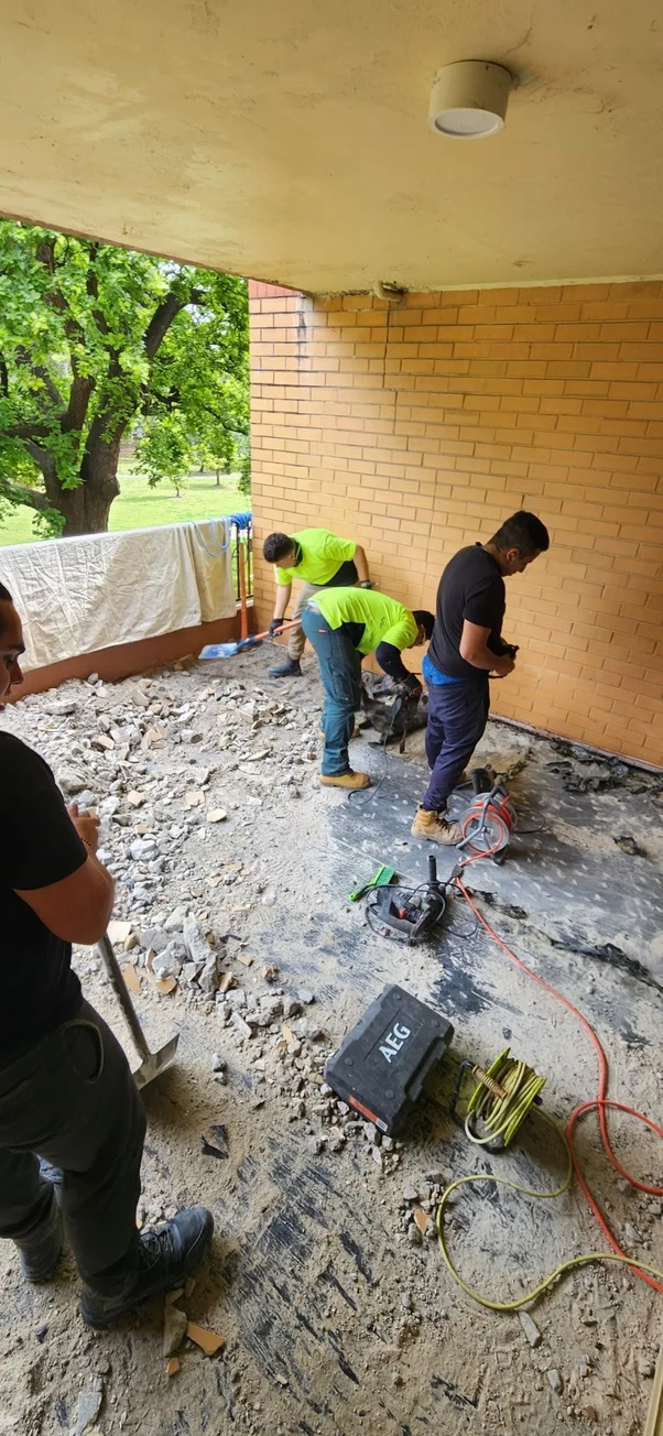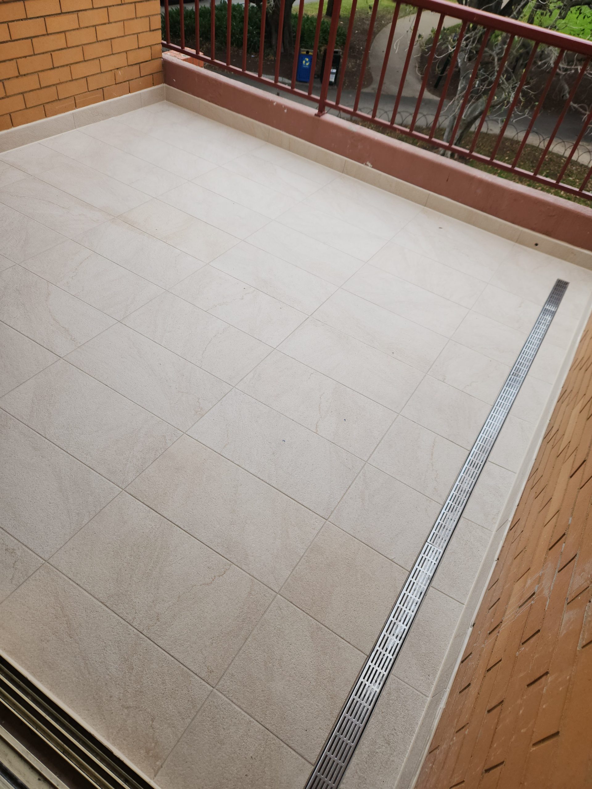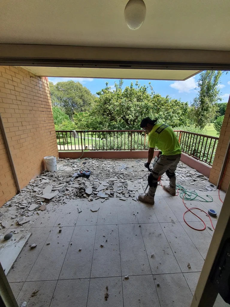 - Demolition phase: Removed existing tiles and screed from all balconies, and disposed of rubbish from levels 1–2, avoiding going through residents’ apartments when possible.