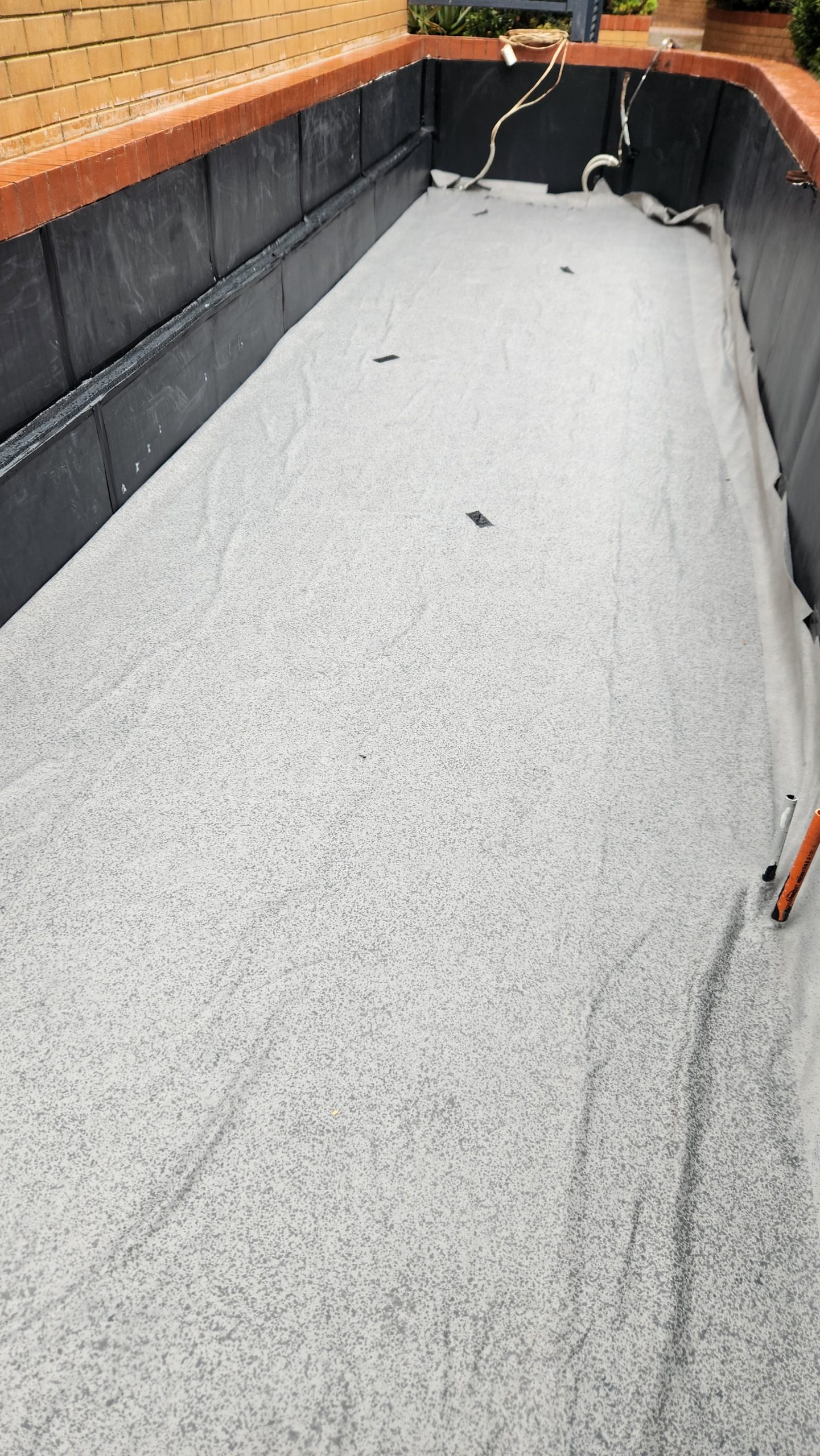 - Substrate preparation: Prepared balcony slabs and planter boxes, ensuring clean, dry surfaces for membrane application.